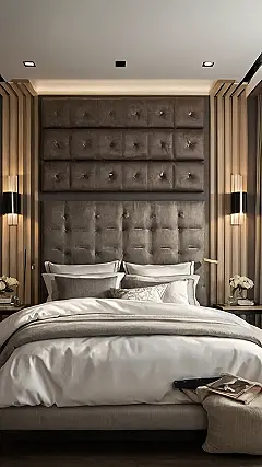 Imagine waking up every morning in this bedroom. You’d feel like you’re in a five-star hotel… or maybe a secret agent’s lair, depending on your imagination. All that fancy bedroom wall decor doesn’t just look cool; it’s practically a statement piece! It’s telling everyone, “This is where the magic happens… the magic of sleeping eight hours straight, that is!”