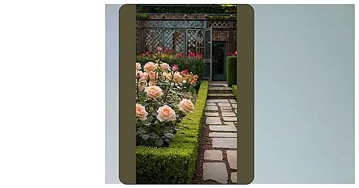 Imagine walking through this rose garden – it’s like stepping into a real-life fairy tale! The picture shows a rose garden design that’s not just throwing roses wherever. Instead, there are different levels and types of plants which makes the garden way more interesting and inviting. You could totally picture yourself having a picnic among these beautiful roses!