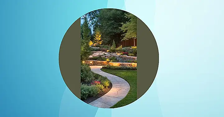 Check out this backyard! It’s basically a real-life video game level, but instead of battling villains, you get to chill out and enjoy the scenery. With those awesome tiered rock gardens, it looks like Mother Nature decided to build some fancy steps just for your plants to show off. And the winding stone path? It’s practically begging you to follow it, maybe to a hidden stash of snacks or just a really comfy hammock. Plus, those little lights twinkling everywhere make it feel like your backyard is always ready for a fancy party, even if it’s just you and your dog.