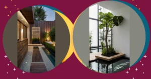 And let’s talk about those pathways – it’s like a choose-your-own-adventure for your feet! Do you stroll along the sleek dark stone, pretending you’re a secret agent on a mission, or hop across the lighter, stepping-stone path that’s practically daring you to play hopscotch? Surrounded by all that fresh green foliage, it’s the perfect spot to escape from homework or just hang out and soak up some sun. Plus, with a cool water feature like that, you might even convince your parents to let you have a *really* fancy outdoor movie night right in your own stunning backyard.