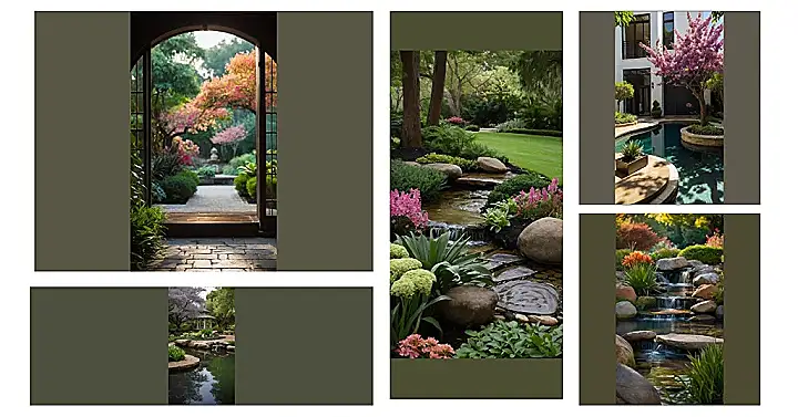 This garden is seriously serene! Imagine chilling out by that little waterfall, surrounded by gorgeous pink cherry blossoms. It’s like a peaceful movie scene, except way more colorful and way less likely to have a scary monster pop out. The little wooden gazebo looks like a place for a magical tea party, or maybe just a spot to read a book and ignore all your homework (shhh!). It’s the perfect blend of nature and chill vibes; it’s a serene garden design dream come true.