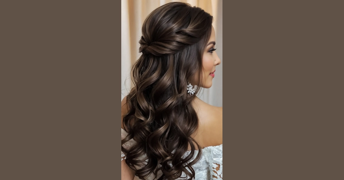 This hairstyle is so amazing, it’s practically magic! Just look at those luscious, flowing curls – they’re like a chocolate waterfall cascading down her back. It’s the kind of hairstyle that makes you want to grab a curling iron and try it yourself (but maybe leave it to the professionals, unless you’re super skilled!). The way it’s half-up, half-down is totally chic, and those soft waves? Perfection. This is definitely a “jaw-dropping” bridal hairstyle that would make any bride feel like a princess.