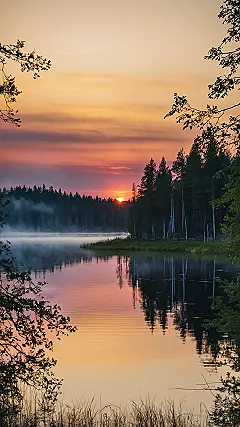 Forget boring screensavers, this picture from Finland is like bringing a piece of epic nature right to your desktop! Look at those colors exploding across the sky, painting the water all kinds of pink and orange. It’s so calm, with the mist creeping over the lake like a shy ghost, and those trees standing tall like silent guardians. Seriously, if your computer could breathe a sigh of relief from all your homework tabs, it would pick this view. It’s basically yelling “Put me on your wall…paper!” in a super chill, Finnish accent.