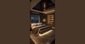 And check out the rest of the gang on the black console table. Those plants are so green and vibrant, they probably think they’re too cool for school, unlike that one struggling succulent you got as a gift. And that sleek black table with its fancy gold knobs? It’s definitely hiding something important in those drawers, like maybe the remote control to a secret laser show, or just a very organized collection of embarrassing baby photos. With that comfy blanket casually tossed on the ottoman, this whole setup just screams “I’m stylish, but also down for a serious snack and Netflix marathon.” It’s almost too perfect, making your actual room feel a little bit jealous.