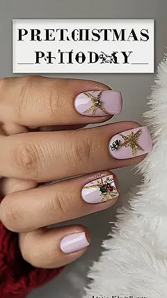 These nails are seriously festive! Look at those adorable little holly leaves and berries on some nails, and that glittery gold one—it’s like a tiny Christmas party on your fingertips! They’re totally simple, but still super stylish, perfect for rocking at the holiday party or just cozying up with hot cocoa. No need for anything super fancy, just a touch of Christmas cheer for your nails.