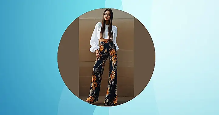 This outfit is totally rocking the “elegant floral dress” vibe, even though it’s not a dress at all! It’s like someone took a gorgeous floral print, decided to make it super comfy wide-leg pants, and then paired it with a chic, puffy-sleeved white top. It’s proof that you can be both stylish AND comfortable. Imagine strolling through a farmer’s market or heading to a casual party – this outfit would totally work for both! The colours are super flattering and the whole thing just looks effortlessly cool. No need for a complicated dress when these pants are this fantastic.