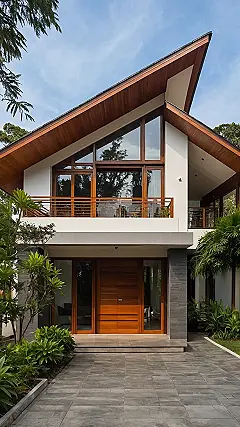 Living in a place this cool means you’d probably feel like you’re in a super-secret spy hideout, but with way more natural light and significantly fewer lasers. Think about it: epic sleepovers, blasting your favorite tunes without shared walls, and enough space for your wildest dance-offs – all because it’s *your* single family house! Plus, with all those slick wooden accents and lush green plants, it’s not just a house; it’s practically a resort. You might actually want to do your homework on that stylish balcony, or at least pretend to while secretly planning your next big adventure. Just try not to get distracted by how utterly cool your home looks!