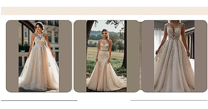Now, for the boho brides out there, rejoice! There are options aplenty for blending casual with chic. Think flowing skirts that catch the light during your vows and flirty short dresses for your reception—your “I do” moments can be both dreamy and down-to-earth! Oh, and those rich peach and ivory accents? They blend beautifully, creating a cohesive, romantic palette that will have your guests swooning.
