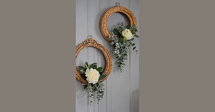 These aren’t your grandma’s dusty old portraits; they’re totally reimagined frames flaunting flowers! Forget filling your living room with boring art; these gilded hoops are like fancy botanical donuts for your walls. They bring a touch of elegance without the stuffiness, making your living room feel like a cool, updated garden party, minus the awkward small talk and soggy sandwiches.
