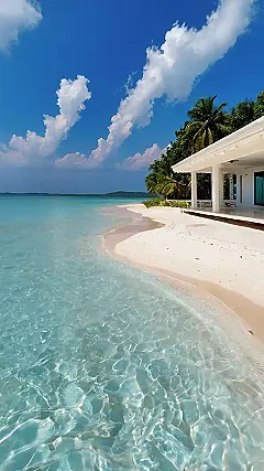 This photo is totally what Instagram dreams are made of! Just imagine chilling on that super white sand with the clearest water you’ve ever seen. It’s like the ocean is saying, “Come on in, the water’s amazing!” And with that fancy house right there, you could snap pics all day long and become a famous travel photographer, showing everyone what they’re missing. Who needs filters when nature already made it perfect?
