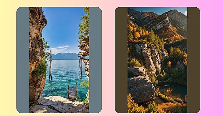 Looking at this picture, it’s like nature decided to go all out with the fancy filter! You’ve got mountains towering up like giant stone sculptures, trees rocking all the cool autumn shades from sunshine yellow to fiery orange, and a little splash of water chilling down below. This definitely looks like one of those ‘amazing places to visit’ that pops up online and makes you question why you’re sitting inside doing… well, anything else. It’s the kind of view that makes you want to pack a backpack, grab some snacks (definitely snacks), and just wander around pretending you’re in an epic movie trailer.