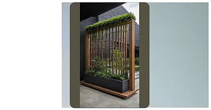 You know how sometimes you just need to chill out and get out of the direct sun? Well, plants get it too, especially those delicate leafy ones! This awesome setup is like a five-star resort for greenery that isn’t too keen on getting a sunburn. It’s got these cool wooden slats forming a privacy screen, topped and filled with lush plants like ferns and vines that are clearly living their best life in the dappled light. It’s basically a super stylish vertical shade garden, making sure all those green buddies stay happy, hydrated, and totally un-wilted instead of looking like sad lettuce on a hot day.