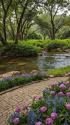 Then there’s that perfect little cobblestone path, practically begging you to stroll along it, maybe even skip a little. Those flowers are having a full-on color party, with bright pinks and cool blues making the whole scene pop like confetti. This spot is so picture-perfect, you almost expect a fairy to pop out from behind a peony, or at least for a chill lo-fi beat to start playing in the background. It’s truly one of those incredible places that makes you wonder if your backyard just needs a serious glow-up to compete!