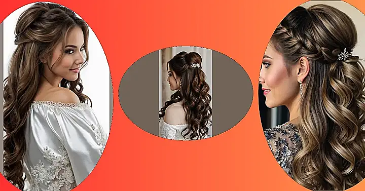 Figuring out what to do with your hair for a big event, like maybe even a wedding someday, can be way confusing. But this whole half up half down thing is like the ultimate cheat code for awesome hair! The top part is all neat and tidy, maybe pulled back in a cute little bun or twist like in the picture, which is super smart because you won’t have strands sticking to your lip gloss or getting in your way when you’re trying to eat cake. It’s like, “Look how put-together I am!”