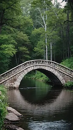 This picture makes you feel like you’re stepping into a storybook! The bridge looks like it’s made of old, weathered wood and stone, and it curves gracefully over a little stream. It’s a perfect spot to escape the hustle and bustle of everyday life and just enjoy the peace and quiet. Imagine yourself walking across this bridge, maybe on a crisp fall day with the leaves changing colors all around you. The air would be fresh and clean, and the sound of the water trickling over the rocks would be a calming melody. You might even spot a little creature or two hiding in the lush green foliage.