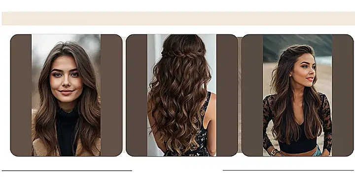 Getting ready for fall doesn’t just mean digging out your coziest sweaters; it’s also prime time for a hair refresh! This awesome half-up ‘do is literally perfect for when you want to look super put-together without spending all morning battling your hair. You get those gorgeous waves flowing down like a waterfall, but the top half is neatly twisted back, keeping those pesky strands out of your face while you’re tackling homework or, you know, trying to catch all the falling leaves for your aesthetic Instagram post. It’s like the superhero of fall hairstyles: stylish AND practical!