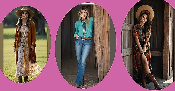 Who knew rancho wear could be this stylish? Peeking out from under that amazing flowing dress are some boots that look like they’re ready to two-step or just strut with confidence. They’ve got that classic vibe but with a chic heel, perfect for making a statement, even if you’re just leaning against an old wooden door like a total pro. This whole look says ‘I can handle a dusty trail, but I prefer a dance floor’ – a perfect blend of rustic charm and absolute style that’s both comfy and super cool.