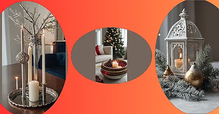 I love how one candle is in a rustic, kinda beat-up holder, giving it a unique, vintage feel. It’s like it’s been passed down through generations of Christmas celebrants! And the other holders? They’re all fancy and different; the whole setup looks like it belongs in a Christmas magazine. It’s proof that sometimes the simplest things – a few candles and some pretty holders – make the best Christmas decorations.