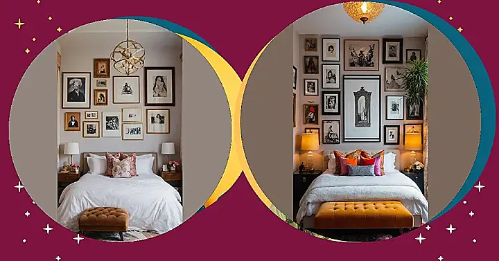 To kick things off, let’s talk about color. Drench your space in deep emerald greens or moody purples, creating an enchanting ambiance that speaks to your personalities. Accent pillows, throws, and rugs in these jewel tones will provide a pop of vibrancy against darker elements. And who says you can’t DIY your way to a magnificent statement wall? A splash of paint or a carefully curated collection of vintage frames can elevate your bedroom’s energy dramatically.