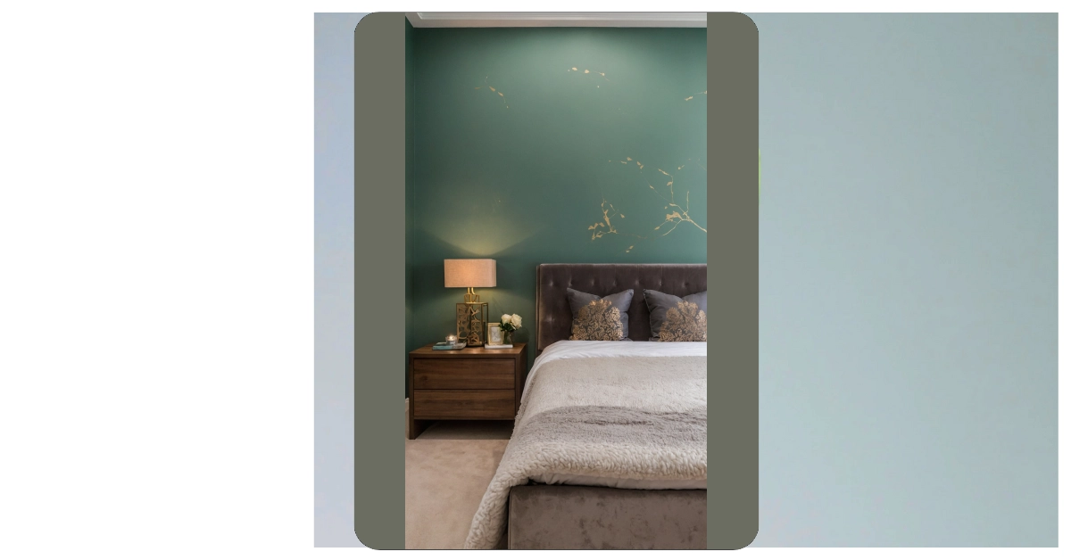 Check out this bedroom wall decor! It’s so classy, I feel like I need to wear a fancy suit just to walk past it. That big, plush headboard looks like it could swallow you whole in comfort, and those golden lines on the wall? They’re giving off serious ‘royal palace’ vibes. My own bedroom wall is usually decorated with a random poster and maybe a questionable stain, so seeing this makes me wonder if I’m even worthy. I bet this wall has a secret butler who dusts it hourly and whispers sweet compliments about its geometric perfection.
