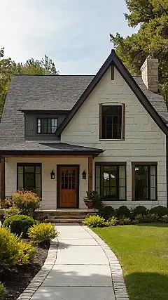 Forget stuffy castles, this is where the real magic happens! Who needs a moat when you have a gorgeous stone pathway leading to your front door? And that roof? It looks like it’s perfectly designed to withstand even the wildest of weather. This isn’t just a house, it’s a home built for comfort, relaxation, and maybe even a friendly game of hide-and-seek amongst those lovely trees. Seriously, I’m already packing my bags!