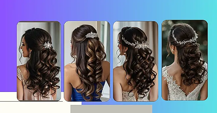 Choosing a hairstyle for a big event can feel like trying to decide which flavour of ice cream to eat forever. But check out this look from the picture! It’s the ‘half up, half down’ magic trick. It’s like saying, “I’m fancy, but I also like my hair to flow like a mermaid.” Plus, that sparkly thingy adds major princess vibes without needing a full-on tiara. It keeps the top part looking neat, so you don’t have to worry about hair flying into your face when you’re trying to look glamorous, which is always a win.
