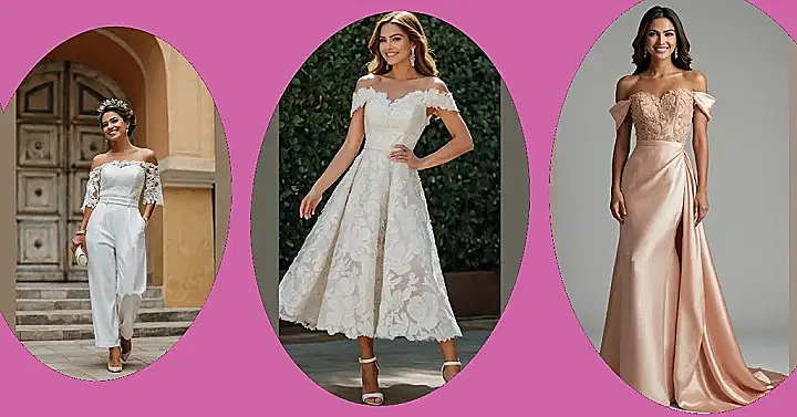 That dress is so dreamy, it’s like a fairytale princess escaped and borrowed her gown! The off-the-shoulder style is super cute, and the lace detail is giving major sophisticated vibes, which is great, because you’ll want to feel fabulous as you strut down the aisle, knowing that everyone is thinking, “Wow, she looks amazing!”