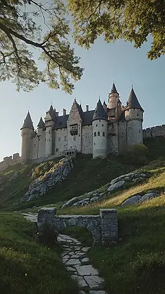 This castle looks like it’s straight out of a fairytale, doesn’t it? With its tall towers and stone walls, it’s easy to imagine a princess or a knight living there. The way the sunlight hits it gives the whole thing a golden glow, almost like it’s magic. Maybe it’s just the way the photographer took the picture, but something about this place feels like a dream.