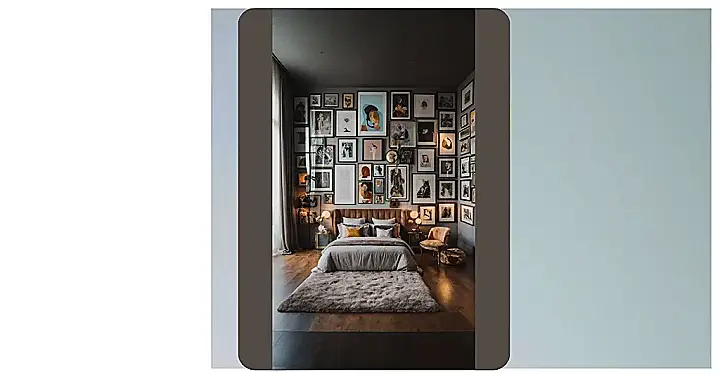 This bedroom clearly got the memo that “more is more” when it comes to decorating, and then some! We’re talking gallery wall goals so epic, you might need a map to navigate all the incredible art. It’s the ultimate “maximalist” move, where every single frame feels like a new secret telling a story, making your space feel more like a super cool private museum than just a place to snooze. You could probably spend an hour just trying to find your favorite picture before lights out!