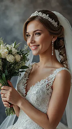Picking the perfect veil and crown combo is like choosing your superpower for the day. Do you go for a dramatic long veil that flows behind you, making you feel like a total movie star? Or a cute birdcage veil for vintage vibes? And don’t even get me started on crowns – from delicate headbands to full-blown tiaras that scream “I am royalty!” It’s all about finding that perfect touch of sparkle and drama to make your amazing hairstyle shine even brighter as you celebrate.