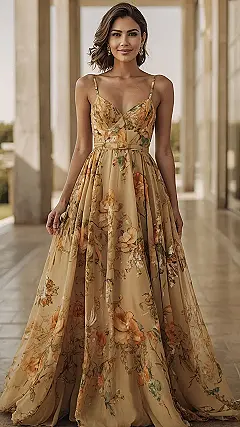 The long flowy skirt is perfect for twirling, making you feel like you’re dancing in the leaves. The straps are so delicate, it’s like they’re barely there, but they hold the dress up perfectly. It’s a real princess-worthy dress that’s sure to make you feel amazing. And, let’s be honest, who wouldn’t want to feel like royalty in a dress this stunning?