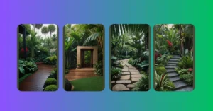But wait, there’s more! Notice that stone wall in the foreground? It looks like it’s guarding a secret entrance to an even more amazing garden! Maybe there’s a hidden waterfall or a secret tunnel behind it. Who knows what magical surprises await! The whole thing just makes you want to explore and discover all the hidden wonders this place has to offer.