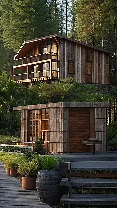 This house is like something out of a fairytale! It’s all made of wood, from the walls to the roof, and it looks like it’s straight out of a storybook. You can almost imagine a family sitting on the porch, sipping hot chocolate and watching the sunset.