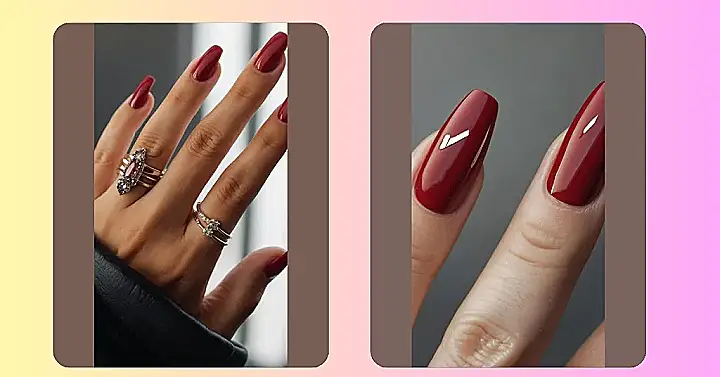 Even though the nails are long, they’re still super sleek and elegant. That dark red color is totally on trend, and it makes the nails look extra glamorous. It’s like they’re saying, “Hey, I’m here and I’m fabulous!” And you know what? They’re totally right.