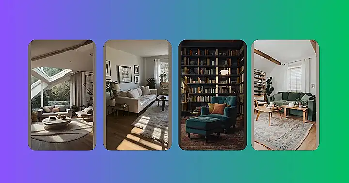 This room is like a breath of fresh air after a long day. It’s simple, calm, and super cozy, making you wish you could just curl up on that comfy couch and read a book. The bookshelf is like a minimalist masterpiece. Just enough shelves, just enough books. It’s not screaming for attention, it’s just quietly saying, “Hey, I’m here, come relax.” And the way the light from the lamp shines on the couch? It’s like the room is whispering, “This is your happy place.”