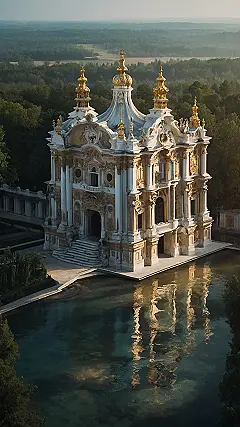 Imagine you’re walking down a street and you see this building. It’s like someone took a giant, golden cake and decorated it with swirls of frosting and tiny, adorable figurines! That’s Baroque architecture for you! It’s all about making things look fancy and dramatic.