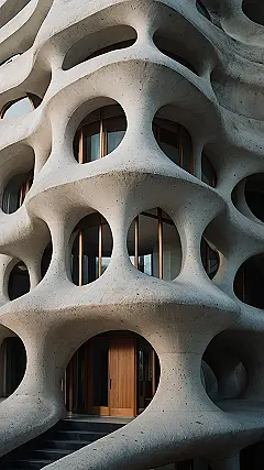 It’s like the architect took a bunch of playdough and squeezed it into cool shapes, but instead of playdough, it’s super strong concrete. The building seems to be hugging the ground, and the windows are like big eyes looking out at the world. You know what’s even cooler? You can almost imagine the building changing with the weather. It would be pretty awesome to live in a house that felt like a big, comfy hug from the earth!