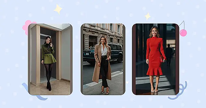 The woman in this picture looks super stylish in her long, flowing beige trench coat. It’s like she’s ready to solve a mystery, but instead of a detective’s hat, she’s rocking a cute polka-dot blouse. The whole outfit is so put-together, she’d probably look great even if she accidentally spilled coffee on herself (don’t worry, we’re not suggesting you try that!). This is the kind of outfit you can wear anywhere, from a casual brunch to a fancy art gallery.