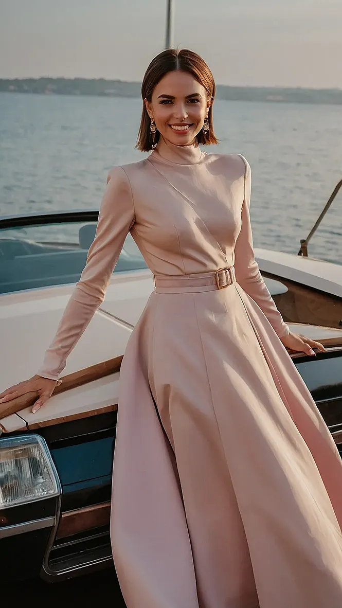 This girl is looking like a total princess in her gorgeous pink outfit. I mean, who wouldn’t want to look like royalty, especially when you’re hanging out on a fancy boat like that? It’s almost like she stepped out of a fairytale. She’s got the perfect hair, the perfect smile, and the perfect outfit for a day on the water. Talk about #OutfitGoals!