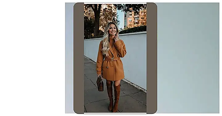 This outfit is giving major “I woke up like this” vibes, even though it’s probably the result of careful planning and a killer outfit. The midsize model is totally slaying the fall fashion game with that awesome camel coat and those knee-high boots. It’s like she stepped out of a magazine! It’s the kind of look that screams “I’m confident and ready for anything” – even a chilly autumn day.