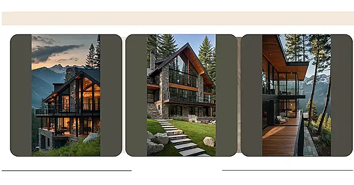 Now, this house is definitely fancy, but it also has a bit of a fun, relaxed vibe to it. It’s like the perfect place to hang out with your friends, maybe roast some marshmallows around a fire pit, or just relax and enjoy the fresh mountain air. And those glass doors? They’re like giant picture frames for the amazing mountain views! So, if you’re looking for a home that’s cool, stylish, and has the best views ever, this might just be your dream spot!