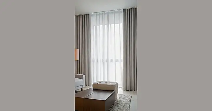 These curtains look so cozy and inviting, don’t they? They’re like a big, warm hug for your living room! You can imagine curling up on the couch with a good book, the sunlight streaming through the sheer curtains, and the heavier ones blocking out any unwanted glare. It’s the perfect way to create a peaceful and relaxing atmosphere where you can just unwind. Plus, those curtains look super stylish with their light brown color – they’d go with almost any decor!