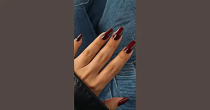 Even though the nails are long, they’re still super sleek and elegant. That dark red color is totally on trend, and it makes the nails look extra glamorous. It’s like they’re saying, “Hey, I’m here and I’m fabulous!” And you know what? They’re totally right.