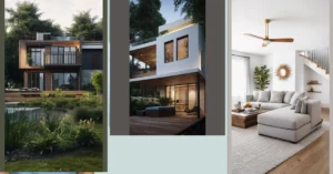 The best part is that the whole house is reflected in the calm pond out front. It’s like the pond is saying, “You look amazing, house! Don’t you think so too?” The reflection makes the house look even cooler and more peaceful – it’s like a painting! Maybe you could even jump in and swim in that cool pond on a hot day. Living in this house would be like living in a peaceful dream!