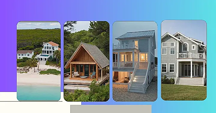This beach house looks like the perfect place to unwind! It’s got a comfy-looking porch and a stairway leading down to the sand. Imagine waking up to the sound of the waves crashing and the smell of salty air. You could spend your days splashing in the ocean or just relaxing on the porch with a good book.