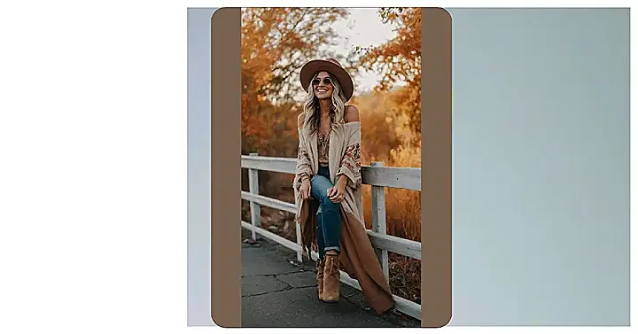Imagine yourself strolling through the park with a cup of hot chocolate, leaves crunching under your feet. You’re wearing this outfit, and you’re feeling confident and ready to enjoy the season. Maybe you’ll even spot some cute squirrels in the trees! Boho chic and cozy comfort? Now that’s a winning combo for fall.