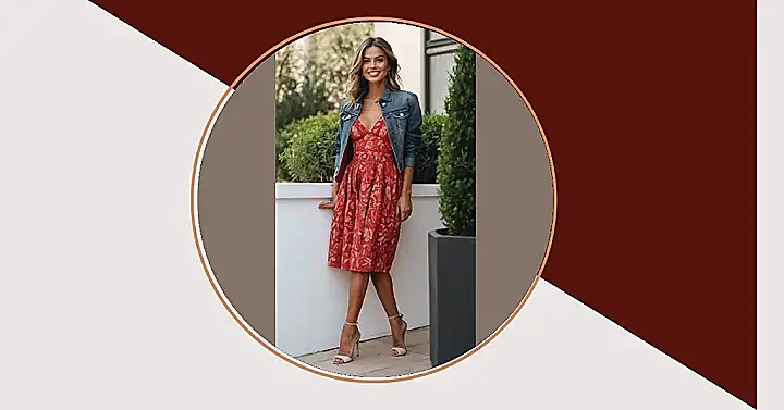 This lady knows how to rock a red dress! It’s got a cute floral pattern and a flowy skirt that would make any girl feel like a princess. And let’s not forget the denim jacket – it’s like the perfect sidekick for her dress. It adds a casual touch and keeps her warm, especially if the weather turns a little chilly. Plus, it’s a super stylish way to look cool and confident.