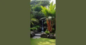 But wait, there’s more! Notice that stone wall in the foreground? It looks like it’s guarding a secret entrance to an even more amazing garden! Maybe there’s a hidden waterfall or a secret tunnel behind it. Who knows what magical surprises await! The whole thing just makes you want to explore and discover all the hidden wonders this place has to offer.