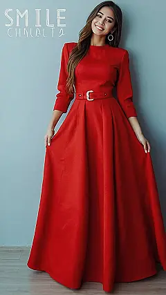 This dress is definitely giving us major European vibes! It’s like something straight out of a Parisian fashion magazine, with its sleek silhouette, flowing fabric, and classic red hue. It’s the kind of outfit that makes you feel like you’re walking down the Champs-Élysées, even if you’re just strolling to your local coffee shop. Who needs a beret when you’ve got this stylish frock, right?