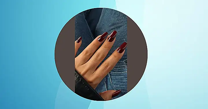 Even though the nails are long, they’re still super sleek and elegant. That dark red color is totally on trend, and it makes the nails look extra glamorous. It’s like they’re saying, “Hey, I’m here and I’m fabulous!” And you know what? They’re totally right.
